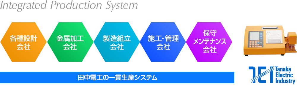 田中電工では、「企画・提案」に始まり、試作製作から量産までの自社一貫体制を確立。また、一部工程だけの委託も可能です。さらに、量産については、1ロット数台からの少量生産を実現いたします。